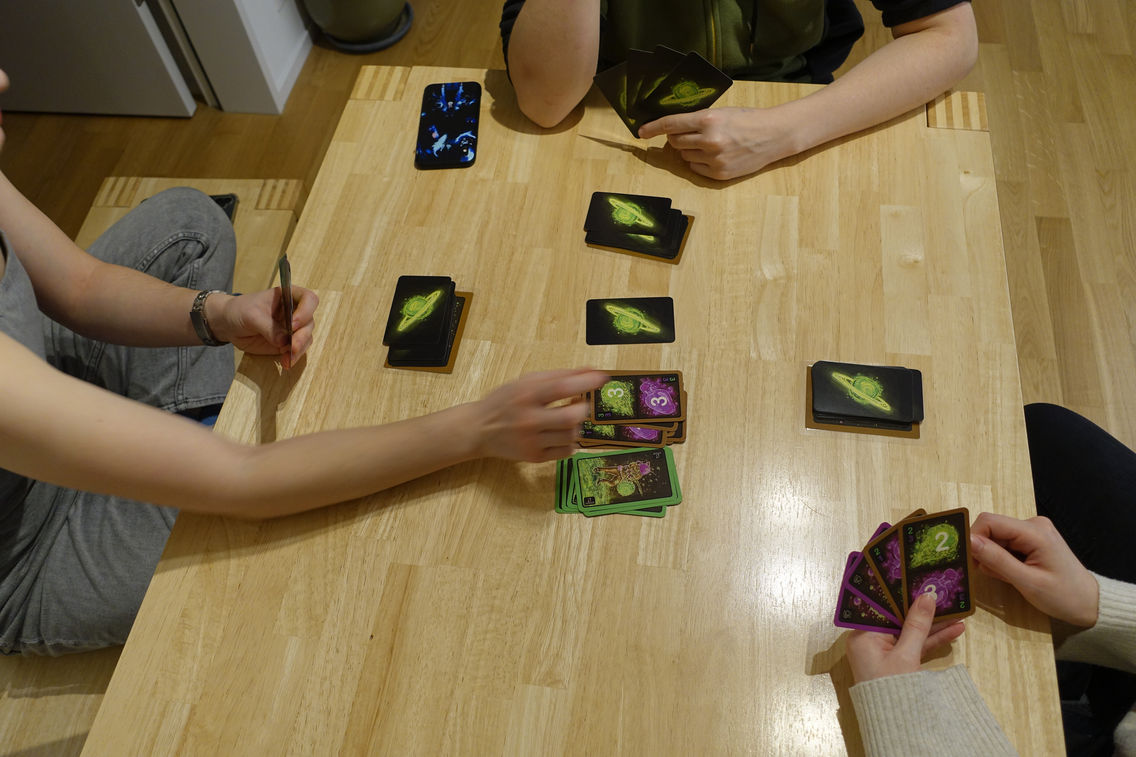 "Survive the acid planet through shooting acid balls, healing yourselves and evading attacks. A combative card game where the last astronaut standing wins."
